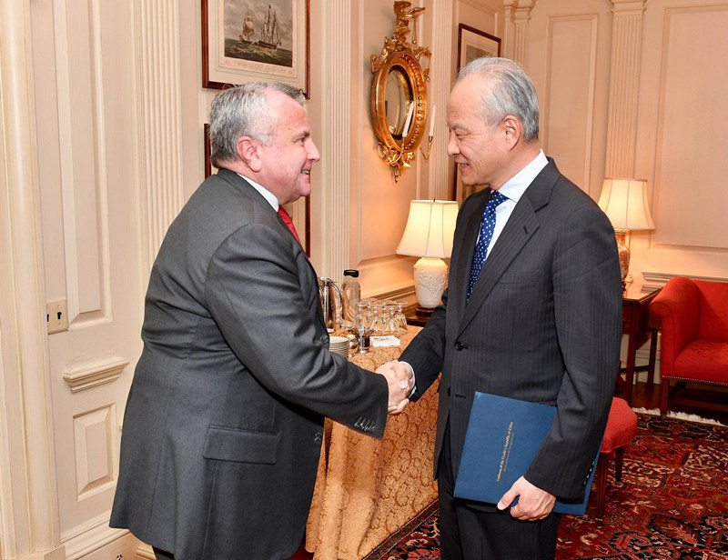 O embaixador observou que a rela??o sino-americana está em um momento importante e que os dois lados devem fortalecer a comunica??o e coopera??o, aumentar a confian?a mútua e lidar adequadamente com as diferen?as, com o objetivo de evitar mal-entendidos.