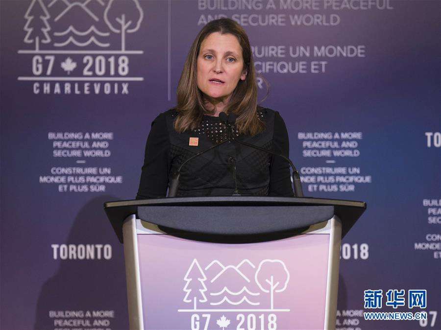 Vancouver, 8 de junho (Xinhua) -- A Ministra das Rela??es Exteriores do Canadá, Chrystia Freeland, falou contra os Estados Unidos sobre suas tarifas do a?o e alumínio na sexta-feira durante a cúpula do Grupo dos Sete (G7) em Charlevoix, Quebec.