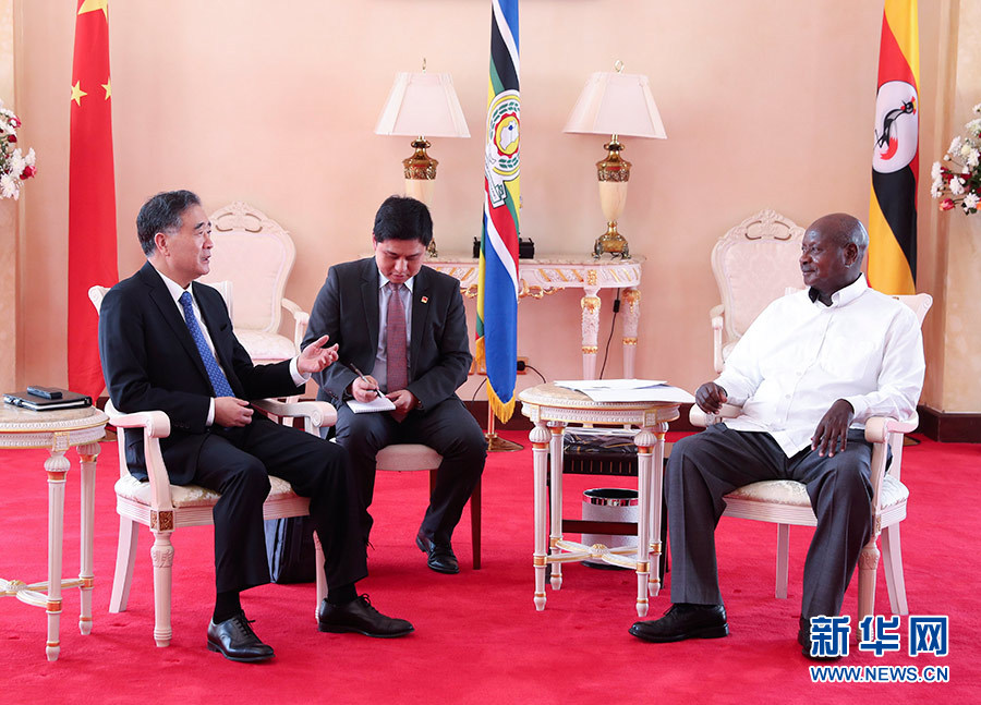 Ao encontrar com o presidente de Uganda, Yoweri Museveni, Wang Yang transferiu os cumprimentos do presidente chinês, Xi Jinping. Wang Yang disse que o presidente dá boas-vindas à Museveni para participar da Cúpula de Beijing do Fórum para Coopera??o China-áfrica. Ambos os países devem fazer a interconex?o das estratégias de desenvolvimento e promover coopera??es dentro do quadro de “Cintur?o e Rota”. Por sua vez, Museveni disse que a amizade entre a China e Uganda é profunda e espera poder planejar o futuro junto com Xi Jinping, na Cúpula de Beijing.