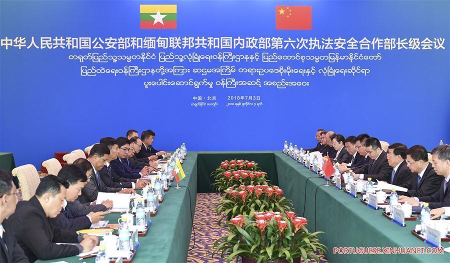 Beijing, 4 jul (Xinhua) -- O conselheiro de Estado chinês, Zhao Kezhi, e o ministro dos Assuntos do Interior de Mianmar, Kyaw Swe, copresidiram nesta ter?a-feira em Beijing a sexta reuni?o ministerial China-Mianmar sobre coopera??o em aplica??o da lei e seguran?a.