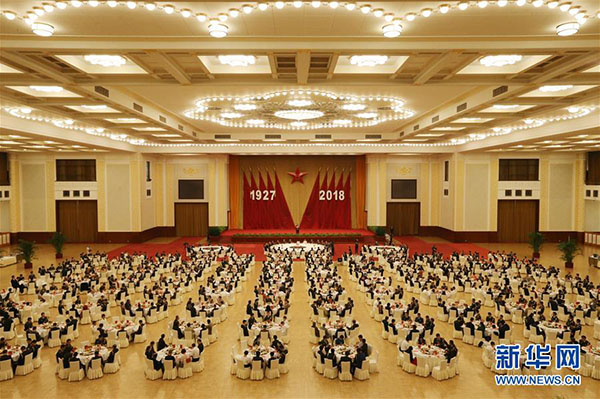 Uma recep??o foi realizada pelo Ministério da Defesa Nacional da China para celebrar o 91o aniversário da funda??o do Exército de Liberta??o do Popular (ELP) em Beijing, capital da China, a 31 de julho de 2018.