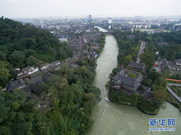 O sistema de irriga??o de Dujiangyan está localizado em Dujiangyan, na província de Sichuan. Construído em 256 a.C. para irriga??o e controle de inunda??es, ainda está em opera??o nos dias de hoje.