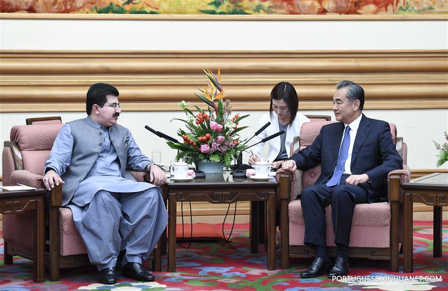 Beijing, 17 ago (Xinhua) -- O conselheiro de Estado e ministro das Rela??es Exteriores da China, Wang Yi, encontrou-se na quinta-feira com o presidente do senado do Paquist?o, Sadiq Sanjrani.