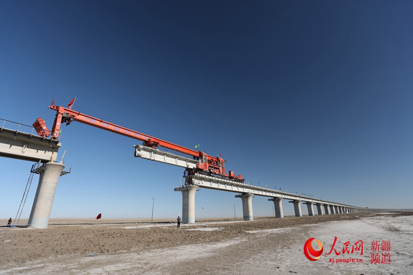 A linha ferroviária de 1.213,7 quil?metros, que está atualmente em obras, será uma passagem crucial ligando Xinjiang com as províncias vizinhas e a ásia Ocidental.