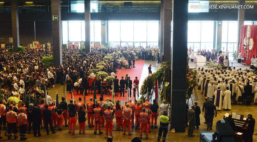 Roma, 20 ago (Xinhua) -- Milhares de pessoas se reuniram no sábado na cidade de Gênova, no noroeste da Itália, para lamentar as vítimas do dramático colapso da ponte que matou dezenas de pessoas no início desta semana.
