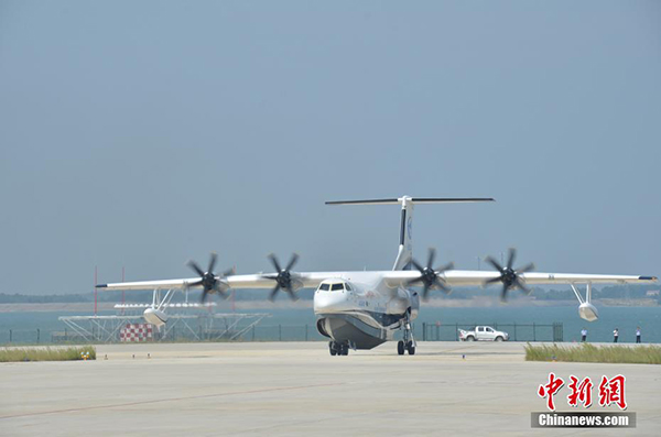 Projetado para ser o maior aavi?o anfíbio do mundo, o AG600 é alimentado por quatro motores turbopropulsores, construídos domesticamente, e tem um alcance de 12 horas, de acordo com Huang Lingcai, designer-chefe da AG600.