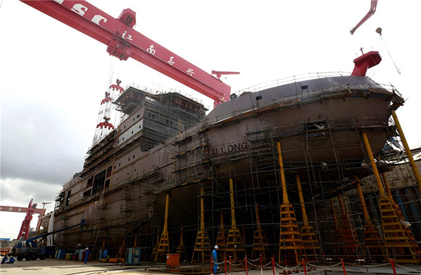 A China irá lan?ar o seu primeiro quebra-gelo de pesquisa de fabrica??o doméstica, Xuelong 2, na segunda-feira, e planeja colocá-lo oficialmente em opera??o no primeiro semestre de 2019, segundo a construtora.