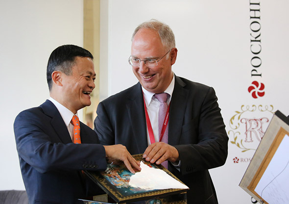 Kirill Dmitriev, CEO do Fundo de Investimento Direto da Rússia, e Jack Ma, fundador do Grupo Alibaba, à margem do Fórum Econ?mico Oriental. [Foto: chinadaily.com.cn]