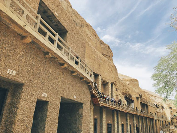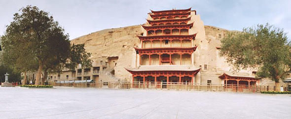 Com cerca de uma milha de comprimento, as cavernas contam com mais de 1.000 anos de arte budista e taoísta, tendo sido um ponto significativo na antiga Rota da Seda. A sua estrutura é composta de 492 cavernas e células que contêm mais de 2.000 esculturas, obras de arte originais e milhares de manuscritos e escrituras de países de todo o mundo, descobertas pelo monge taoísta Wang Yuan-Lu em 1900.