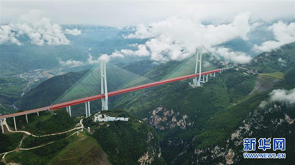 A ponte, com uma altura equivalente a um prédio de 200 andares, é uma das três pontes na se??o Bijie-Duge da via expressa Hangzhou-Ruili, uma estrada que liga as cidades de Hangzhou, na província de Zhejiang, e Ruili, na Regi?o Aut?noma Dehong, na província de Yunnan.