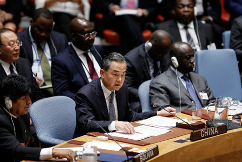 Participando da reuni?o de alto nível sobre A??o pela Manuten??o da Paz durante a 73a Sess?o da Assembleia Geral da ONU, Wang disse que as opera??es de manuten??o da paz devem ser realizadas com o consentimento das partes interessadas, respeitando os princípios básicos da Carta da ONU, como tratamento igual para a soberania de todos os países, n?o-interferência nos assuntos internos e solu??o pacífica.