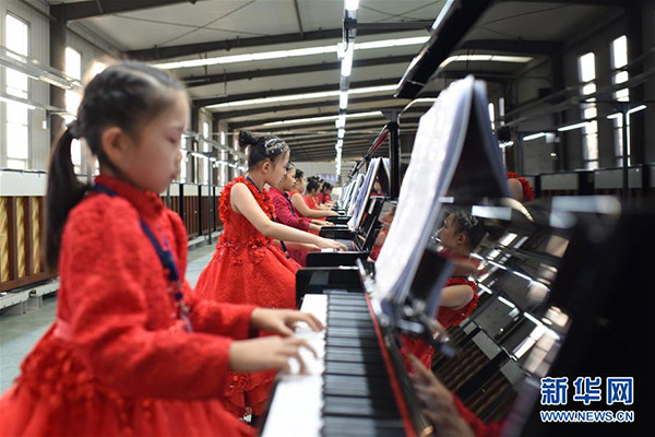 Um total de 666 pianos foram tocados simultaneamente, em Wuqiang, Hebei, estabelecendo um novo recorde mundial. Pianistas de oito países e regi?es uniram esfor?os a favor de crian?as cegas, bem como professores, estudantes e apreciadores da música de toda a China.