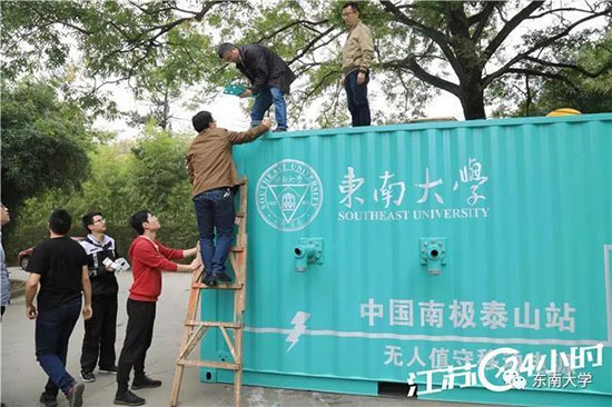 Pesquisadores da Universidade Sudeste da China trabalham em uma “bateria portátil” projetada para fornecer energia aos pesquisadores chineses nas regi?es polares. (Wechat/Universidade do Sudeste)