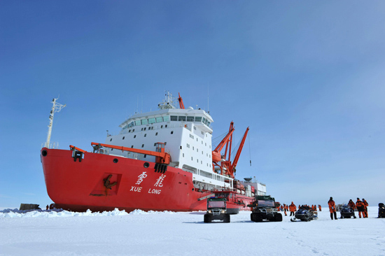 O quebra-gelo chinês “Xuelong”, ou “drag?o de neve”. (Xinhua)