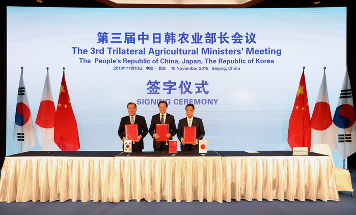 Os três países mantêm intercambios e coopera??o profundos em políticas agrícolas e controle de doen?as animais desde o estabelecimento do mecanismo de coopera??o trilateral, disse Han.