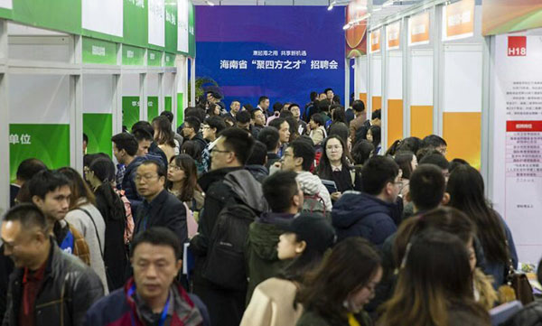 Uma feira de emprego teve lugar no distrito de Zhongguancun, em Beijing, no sábado. Um total de 7.471 empregos de 371 empresas de Hainan foram alvo do interesse de graduados de 33 universidades de Beijing.