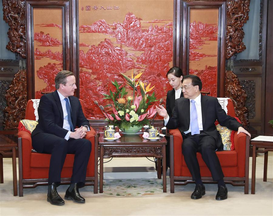 Durante sua reuni?o no complexo de lideran?a chinesa Zhongnanhai no centro de Beijing, Li elogiou a contribui??o de Cameron para os la?os China-Gr?-Bretanha quando serviu como o primeiro-ministro britanico.
