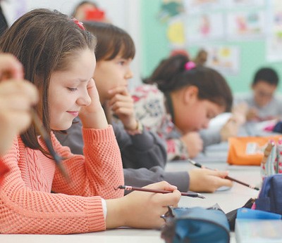 Alunos portugueses praticam caligrafia chinesa numa escola primária em S?o Jo?o da Madeira. (Foto/Zhang Yuannan)