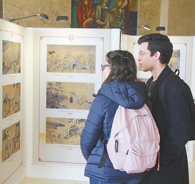 Visitantes da exposi??o cultural “A Sabedoria de Confúcio”, em Lisboa. (Foto/Zhang Yuannan)