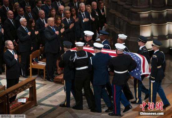 O presidente Donald Trump e a primeira-dama Melania Trump, quatro outros ex-presidentes dos EUA, juntamente com autoridades de todo o país e líderes estrangeiros compareceram ao funeral de estado na Catedral Nacional de Washington.