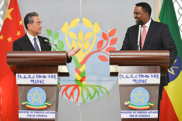 Wang fez as declara??es enquanto falava aos repórteres, após sua reuni?o com o Ministro das Rela??es Exteriores da Etiópia, Workneh Gebeyehu, nesta quinta-feira na capital da Etiópia, Adis Abeba.