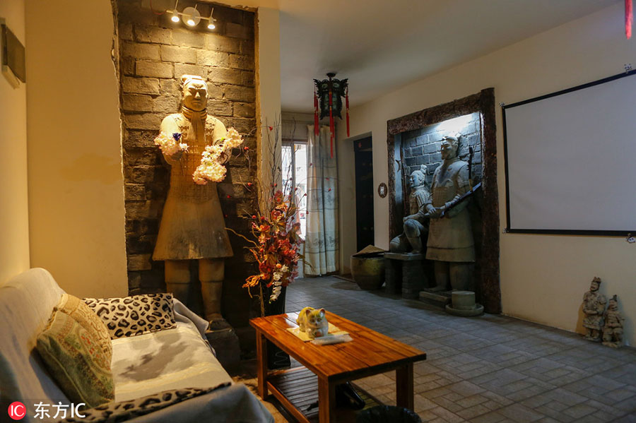 As três suítes temáticas, que variam de 80 a 100 metros quadrados cada, est?o localizadas no centro de Xi'an, lar do exército de terracota.