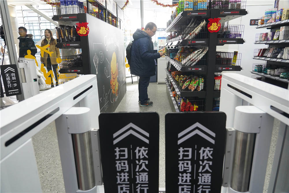 A primeira loja de conveniência sem funcionários do país em um aeroporto também serve passageiros no Terminal Dois do aeroporto de Hongqiao, das 7h às 21h todos os dias. Os clientes precisam apenas escanear um código QR na porta para entrar na loja de 60 metros quadrados.