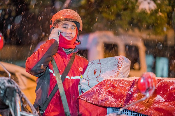 Beijing, 11 fev (Xinhua) -- O gigante chinês de comércio eletr?nico JD.com teve robustas vendas durante o feriado do Ano Novo da China, já que os consumidores atualizam suas compras online de alimentos e presentes.