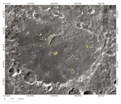 "Tianhe" é o termo para Via Láctea em chinês e "Statio" significa base em latim. Juntamente com outras três crateras nas proximidades e uma colina, o nome foi aprovado pela Uni?o Astron?mica Internacional (IAU, em inglês).