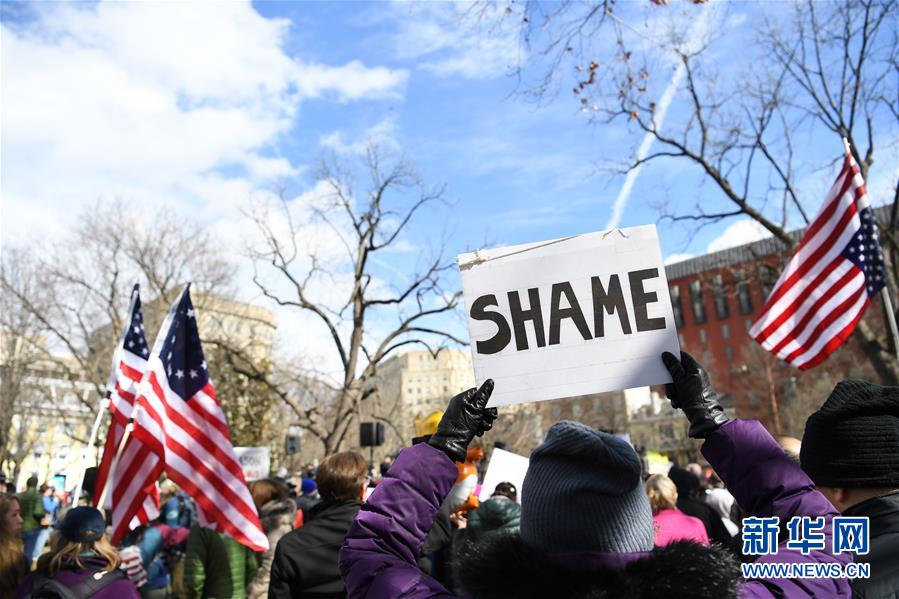 Washington, 18 fev (Xinhua) -- Centenas de manifestantes cantaram diante da Casa Branca na segunda-feira, feriado anual do Dia do Presidente dos EUA, como parte das manifesta??es planejadas em todo o país contra a declara??o de emergência do presidente Donald Trump, com o objetivo de expandir o altamente controverso muro fronteiri?o entre os EUA e o México.