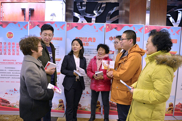Moradores do distrito de Chaoyang após uma sess?o de esclarecimentos sobre a constitui??o nacional.