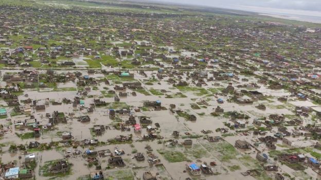 De acordo com organiza??es internacionais de resgate, “90% da cidade de Beira foi destruída”. Foi reportado que ao menos cinco distritos administrativos das províncias de Sofala e de Manica se encontram inundados, deixando o transito completamente interrompido.