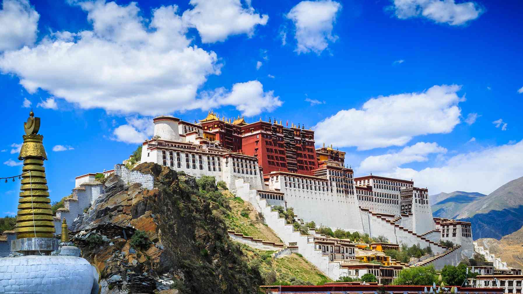 “A partir daqui é possível vislumbrar os vários telhados do complexo do palácio. é possível ver que geralmente tem dois formatos. Um é puramente de origem local. O outro é o telhado dourado, inicialmente adotado no Tibete no século XVII. é uma mistura de elementos arquitetónicos do Tibete e das regi?es vizinhas”, disse Jue Dan, diretor do escritório de gest?o do Palácio de Potala.