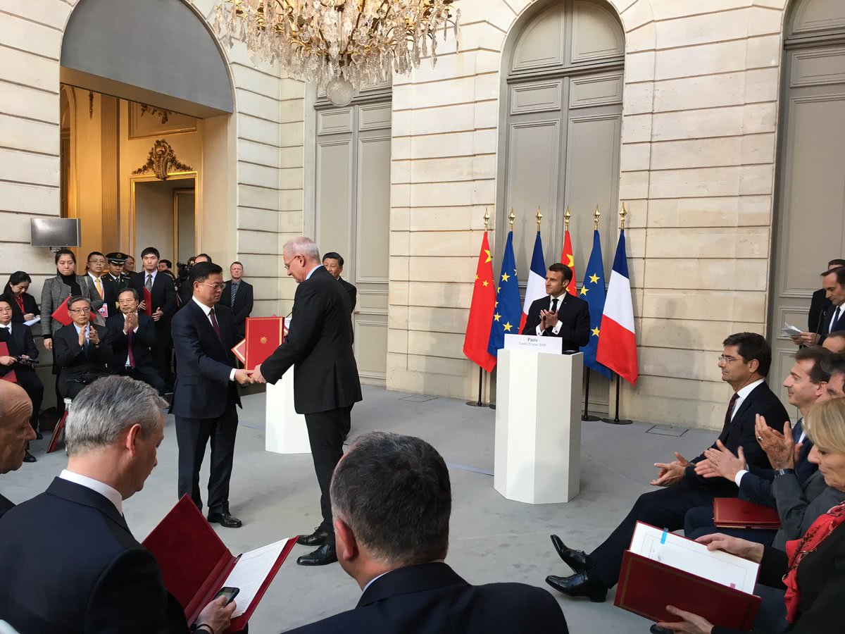 Durante a visita de Estado do presidente Xi Jinping à Fran?a, chefes da Administra??o Nacional do Espa?o da China (CNSA) e o Centro Nacional de Estudos Espaciais da Fran?a(CNES), assinaram um acordo de coopera??o futura entre as duas na??es no Eliseu, em Paris, segundo comunicado oficial do CNES.