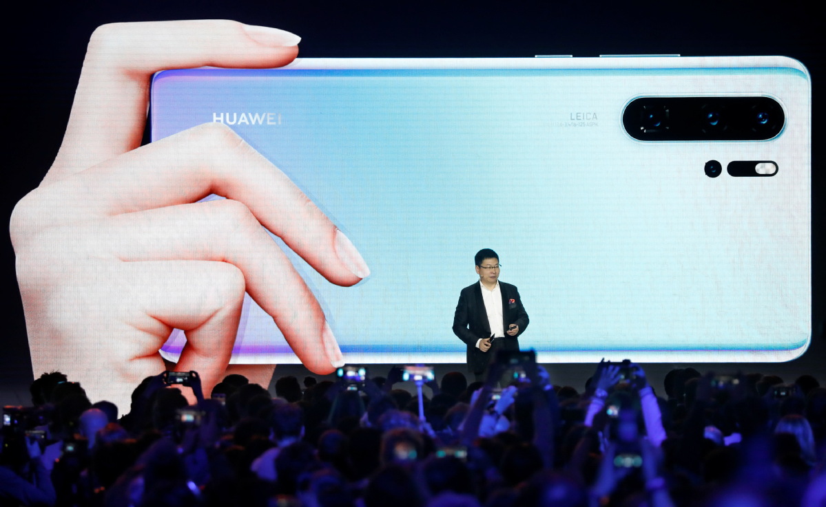 Yu Chengdong, CEO da Huawei, revela o novo Huawei P30 e P30 Pro em lan?amento em Paris, Fran?a. [Foto / Agências]