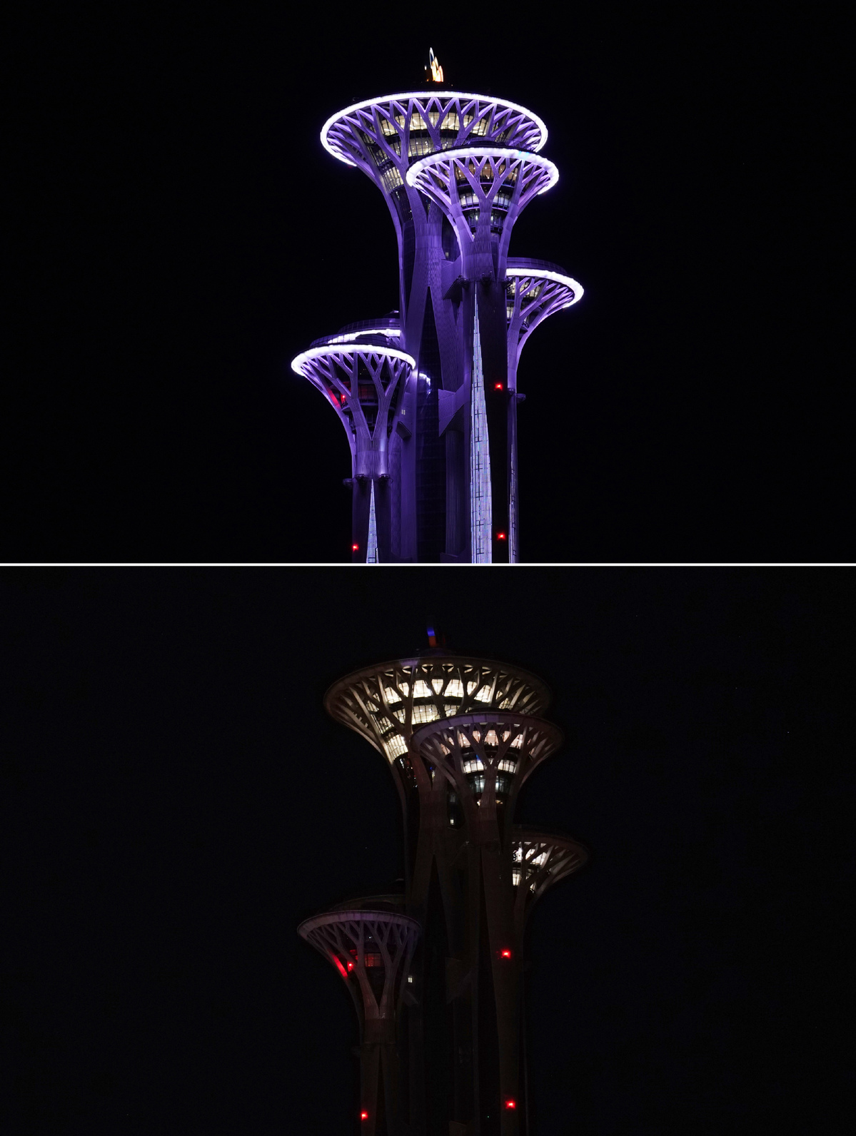A Torre Olímpica em Beijing desligou as luzes, tal como a Torre Pérola do Oriente, em Shanghai, juntamente com outros 20 edifícios no Bund.