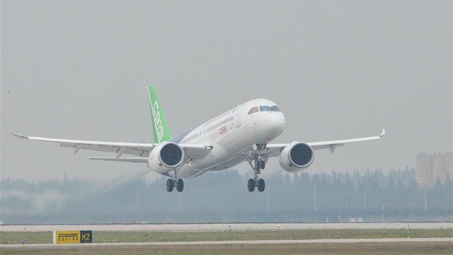 O C919, foi o primeiro avi?o de bordo auto-desenvolvido pela China, conduziu um voo inaugural bem sucedido no Aeroporto Internacional de Pudong, a 5 de maio, 2017.