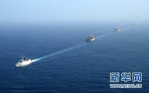 Em 26 de dezembro de 2008, a primeira frota de escolta da marinha chinesa zarpou de Sanya, província de Hainan, com destino à Baia de Adem e às águas da Somália, para cumprir uma miss?o de escolta. A frota, formada pelos contratorpedeiros de mísseis –“Wuhan” e “Haikou”, o navio de suprimentos “Weishanhu”, dois helicópteros e alguns soldados, realizou uma opera??o de escolta para 212 navios cargueiros e resgatou 3 navios em risco.