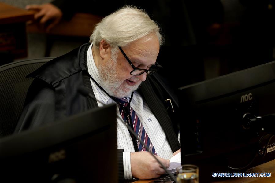 Felix Fischer, Juiz relator do Tribunal Superior de Justi?a (STJ) do Brasil, participa no julgamento do ex-presidente brasileiro Luiz Inácio Lula da Silva, em Brasília, a 23 de abril, 2019. O juiz relator Felix Fischer, do STJ do Brasil, prop?s na ter?a-feira votar para reduzir a condena??o do ex-presidente Luiz Inacio Lula da Silva, preso em Curitiba, com pena de 12 anos e um mês de pris?o por oito anos e dez meses na pris?o. (Xinhua / Lucius Tavora).