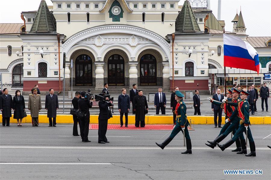 BEIJING, 25 de abr (Diário do Povo Online) -A 24 de abril de 2019, o líder da RPDC Kim Jong-un participou da cerim?nia de boas-vindas realizada em Vladivostok, no oriente extremo da Rússia. Kim Jong-un chegou à cidade de trem na quarta-feira, onde deve realizar seu primeiro encontro com o presidente russo, Vladimir Putin, previsto para a quinta-feira. (Xinhua/Bai Xueqi)