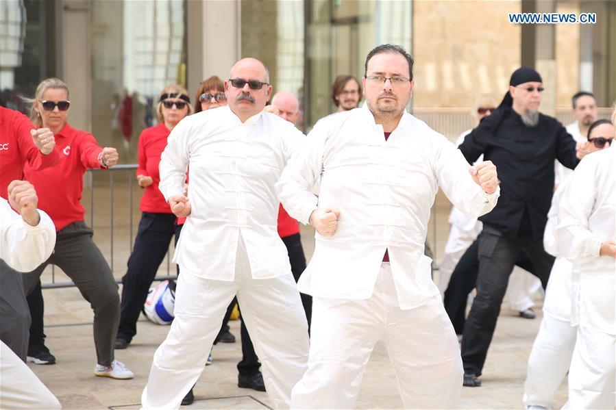 VALLETTA, 29 de abr (Diário do Povo Online) – Um grupo de entusiastas de Taichi pratica em Valletta, a capital de Malta. O Dia Mundial do Taichi foi celebrado no sábado, com uma série de demonstra??es.