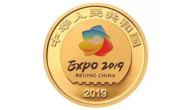Uma moeda comemorativa para a Exposi??o Horticultural Internacional de Beijing 2019. [Foto: cctv.com]