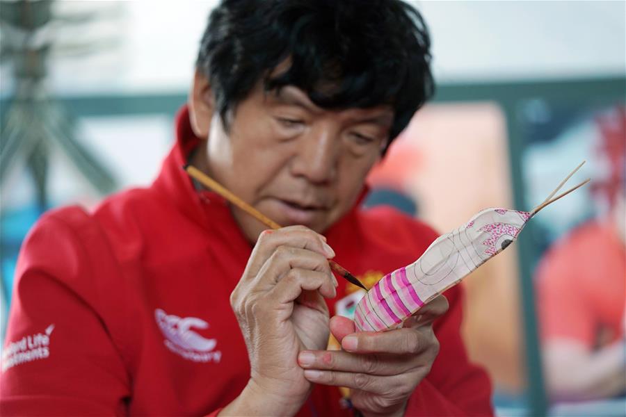 Wei Guoqiu, um respeitado fabricante de pipas de Tianjin, exibe seu trabalho durante o evento "Dia de Tianjin" realizado como parte da Exposi??o Internacional de Horticultura de Beijing no distrito de Yanqing, em Beijing, capital da China, em 5 de maio de 2019. (Xinhua/Ju Huanzong)