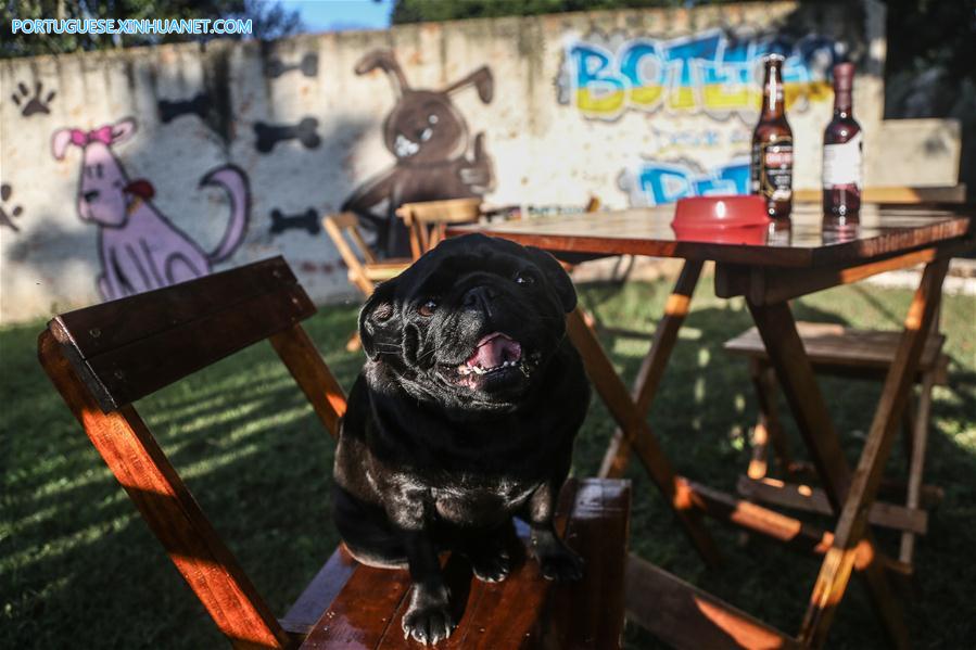 Um c?o senta em uma cadeira no "Boteco Pet", em Curitiba, estado do Paraná, sul do Brasil, em 3 de maio de 2019. Eduardo Ramos, de 35 anos, disse que a ideia do bar para c?es nasceu depois que ele n?o foi capaz de encontrar um lugar no qual pudesse entrar com seus c?es. Ent?o ele criou um parque de 1.400 metros quadrados com jogos e brinquedos, onde os c?es podem experimentar bebidas sem álcool e comer macarr?o e alm?ndegas. O espa?o é tanto para os c?es como para seus donos, que podem comer e beber enquanto seus animais de estima??o se divertem. (Xinhua/Rahel Patrasso)