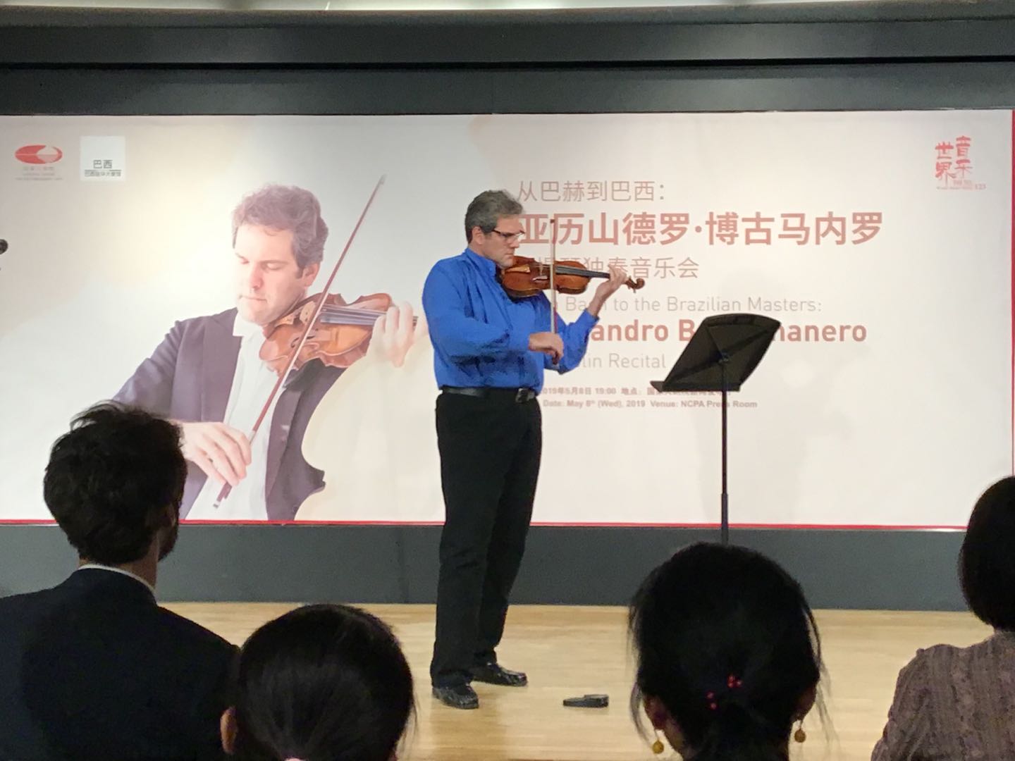 Além dos concertos, Borgomanero também lecionou uma aula de violino para os alunos do Conservatório Central de Beijing.