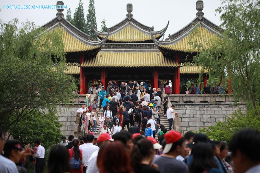 Turistas visitam o Lago Oeste Delgado em Yangzhou, província de Jiangsu, leste da China, em 19 de maio de 2019, o Dia do Turismo na China.