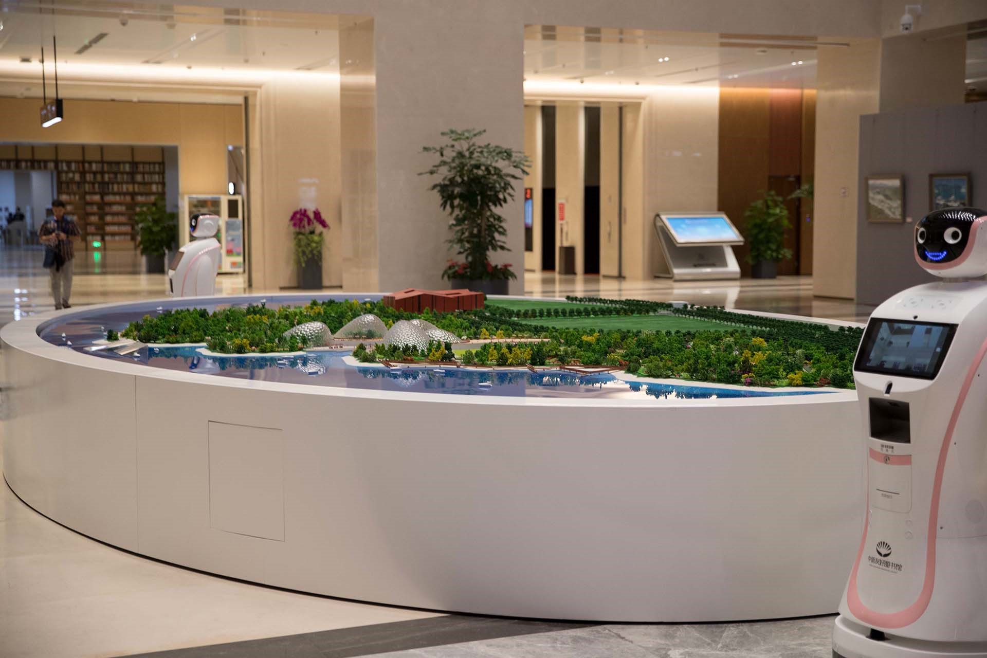 Depois do trabalho, Zhang Yunshan visitou a nova biblioteca da ecocidade. O cart?o de requisi??o de livros foi substituído pelo escaneamento facial. Além disso, realizando busca do nome de um livro com recurso a um rob?, este último irá levar o visitante diretamente ao local onde o livro se encontra. Se estiver acompanhado de crian?as, o rob? está também preparado para contar histórias.