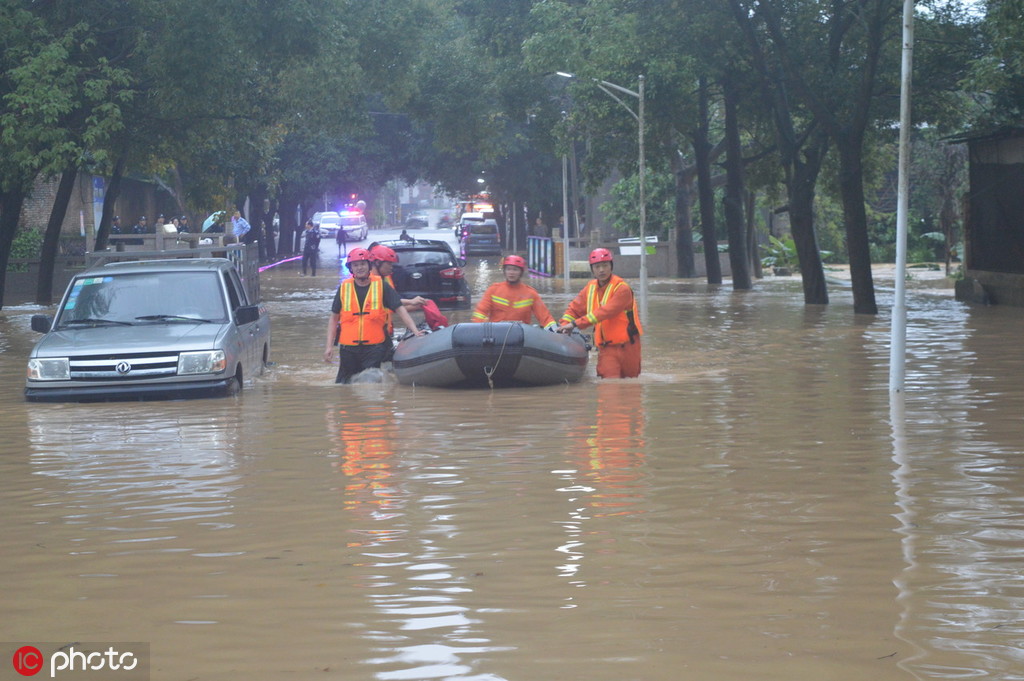 Nas cidades de Nanning, Jingxi e Hechi, e condado de Luocheng, as fortes pancadas de chuva inundaram muitas ruas urbanas e veículos danificados.