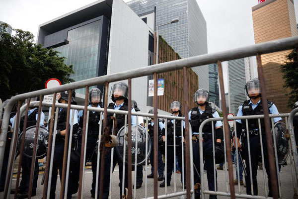 Oficiais de polícia assumem posi??o fora do escritório do Chefe Executivo em Hong Kong a 12 de junho, 2019. [Foto de ROY LIU / CHINA DAILY]