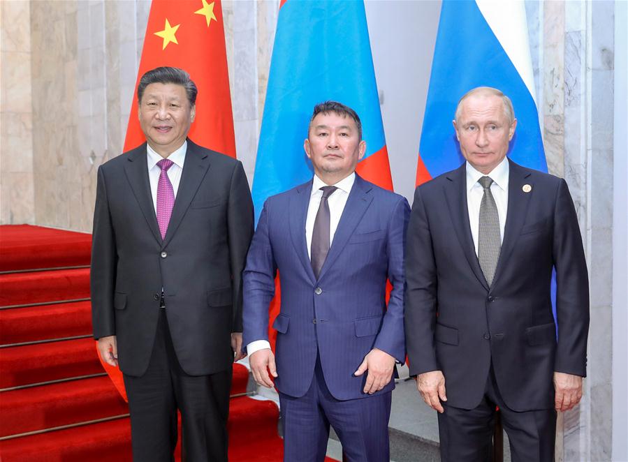 A reuni?o trilateral, a 5a do tipo, entre o presidente chinês, Xi Jinping, o presidente russo, Vladimir Putin, e o presidente mongol, Khaltmaa Battulga, foi realizada no ambito da 19a cúpula da Organiza??o de Coopera??o de Shanghai (SCO, em inglês).